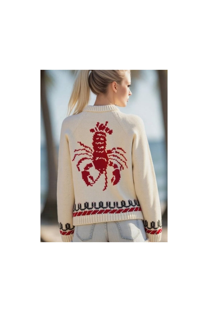 Ocean-Inspired Lobster Pattern Knit Cardigan