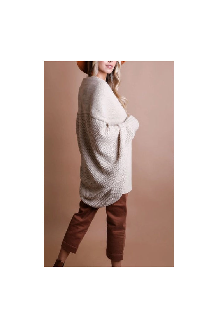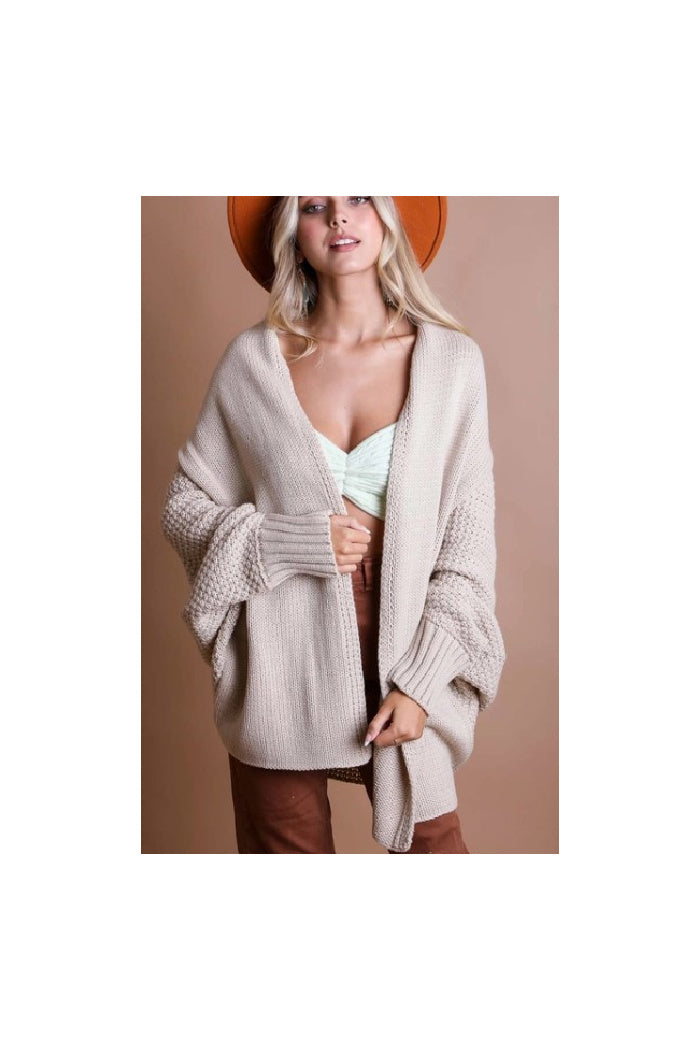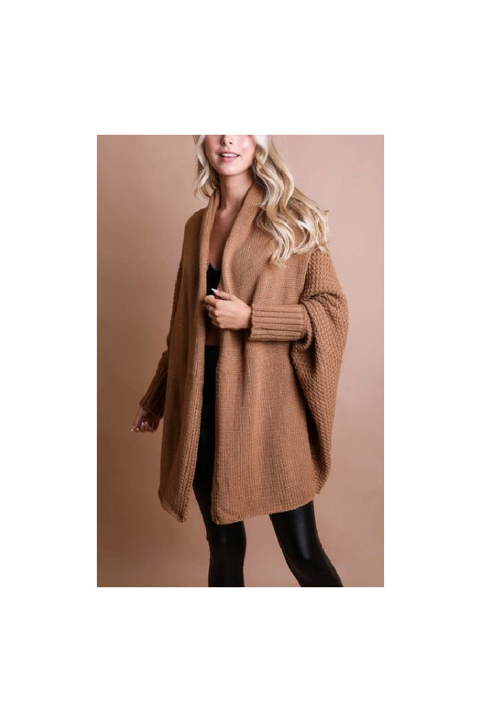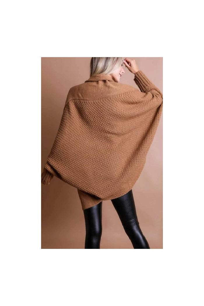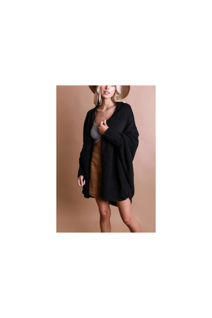 Meet the cardigan that's capturing hearts and turning heads. Our Bat Sleeve Knit Cardigan is a blend of comfort and style, designed to make you feel as fabulous as you look. The knit texture adds a tactile richness, while the bat sleeves offer a unique silhouette that's both relaxed and chic. It's the kind of piece that effortlessly transitions from a cozy day in to a night out. With its versatile design, this cardigan is more than just a layer; it's a statement.
