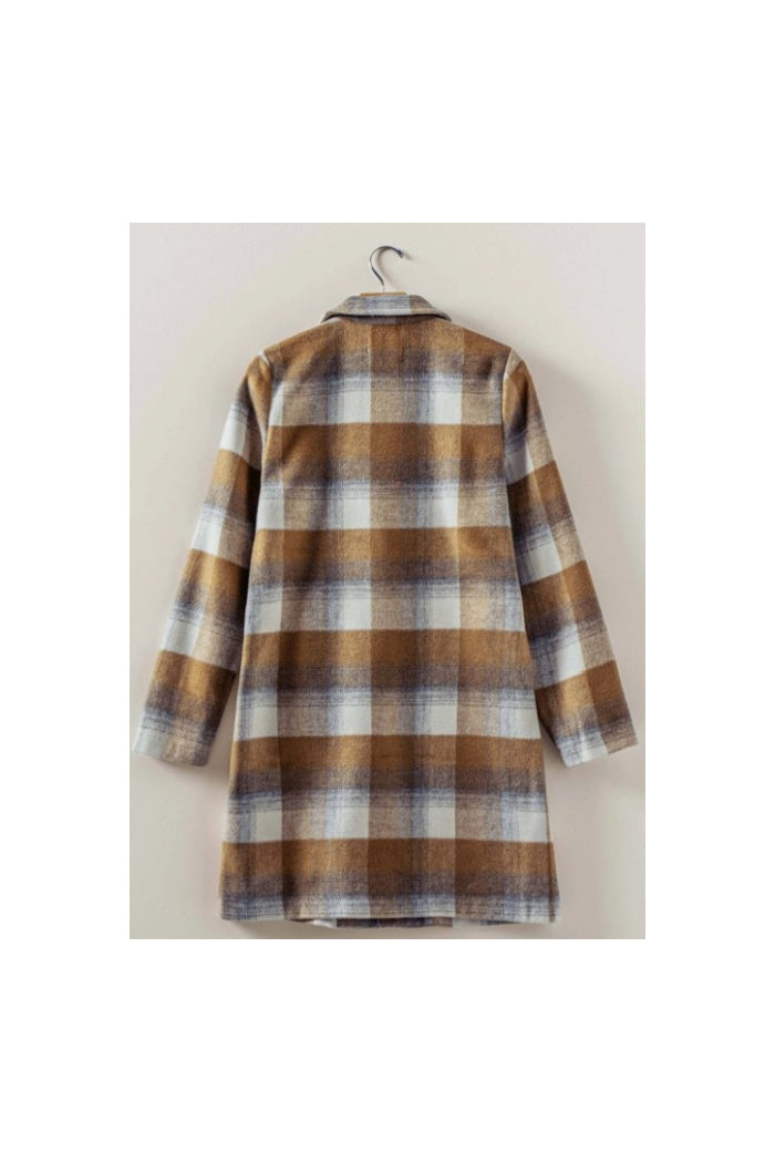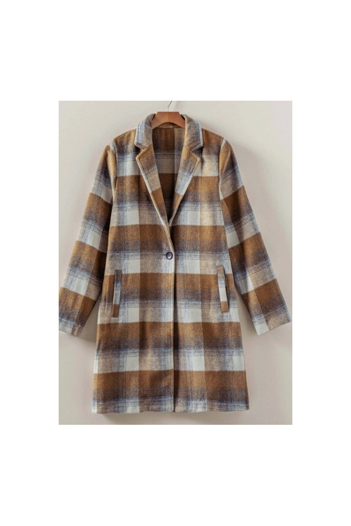 Brushed Plaid Notched Lapel Coat