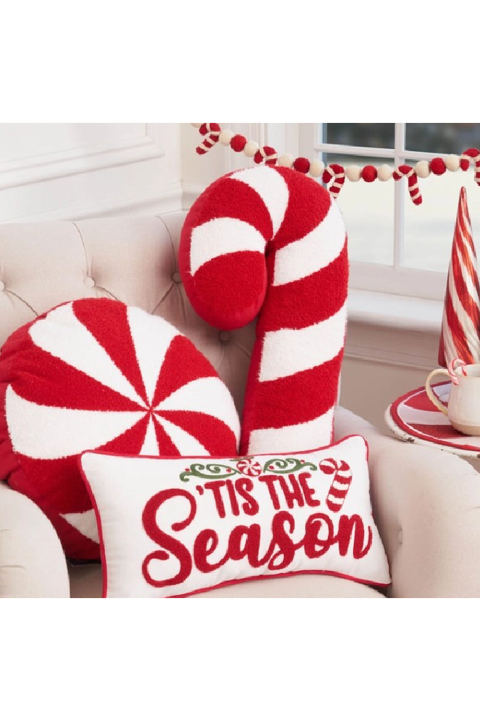 Embrace the classic charm of Christmas with this candy cane shaped pillow. Its whimsical design adds a festive and nostalgic element to your holiday home. Crafted of cotton fabric.