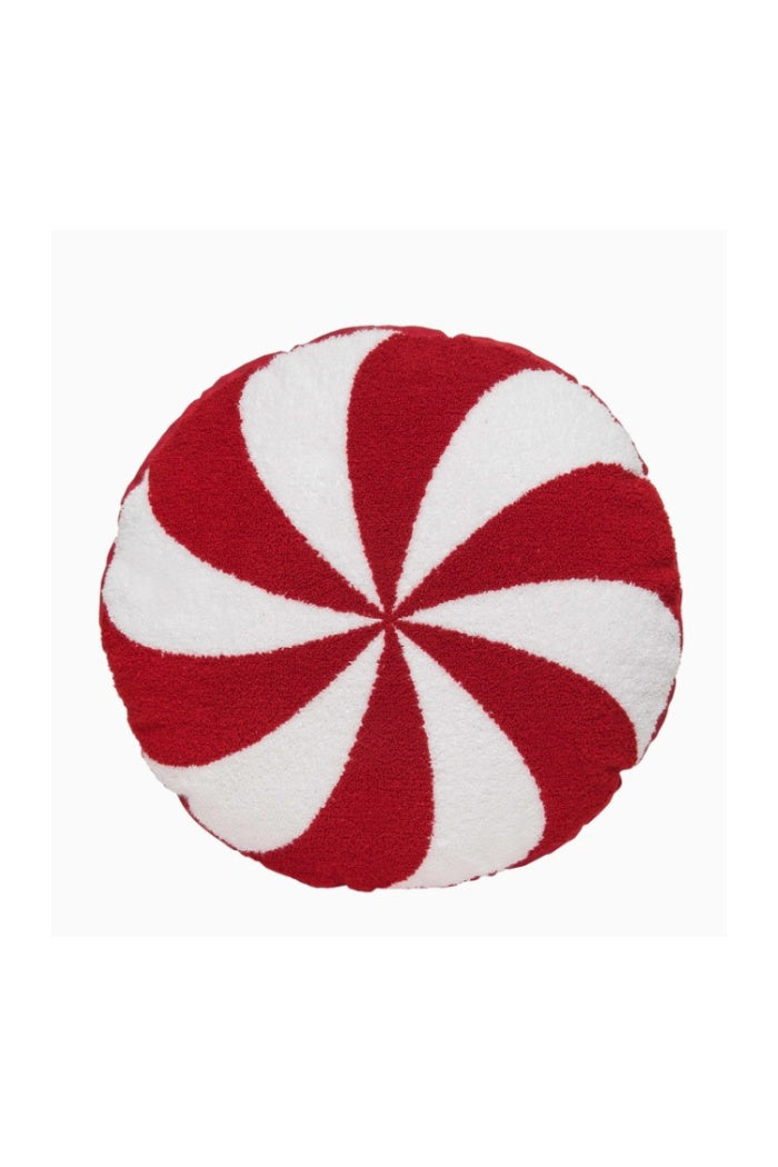 Embrace the classic charm of Christmas with this peppermint shaped pillow. Its whimsical design adds a festive and nostalgic element to your holiday home. Crafted of cotton fabric.