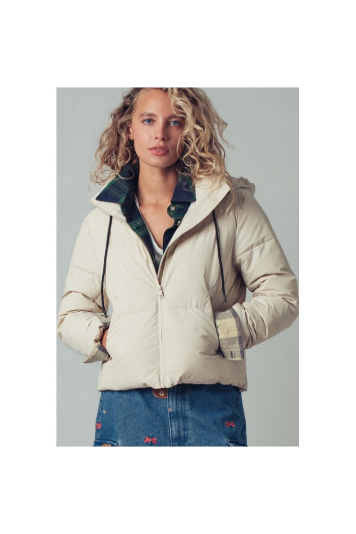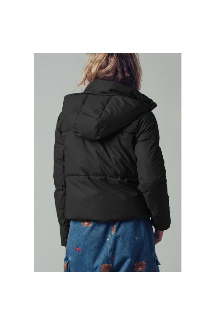 A chic winter layer with a modern matte finish, this padded jacket features a stand collar, adjustable drawstring hood, and a relaxed zip-front silhouette. It’s built for warmth, movement, and effortless city-ready style.