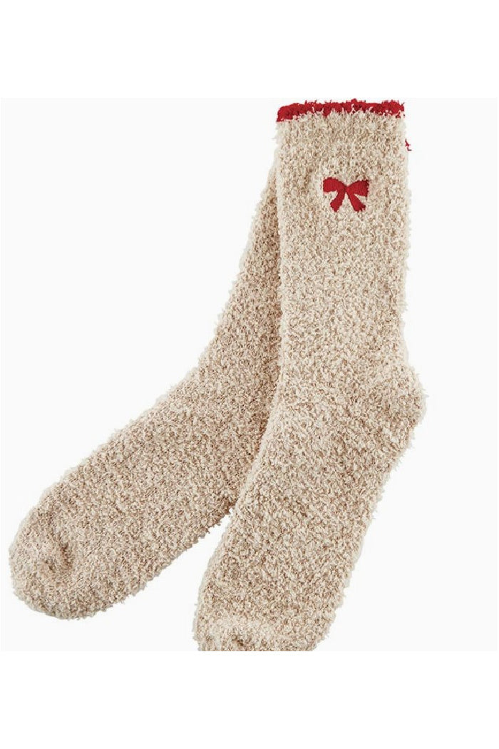 Cozy Socks in Ornament - Blush with Red Bow