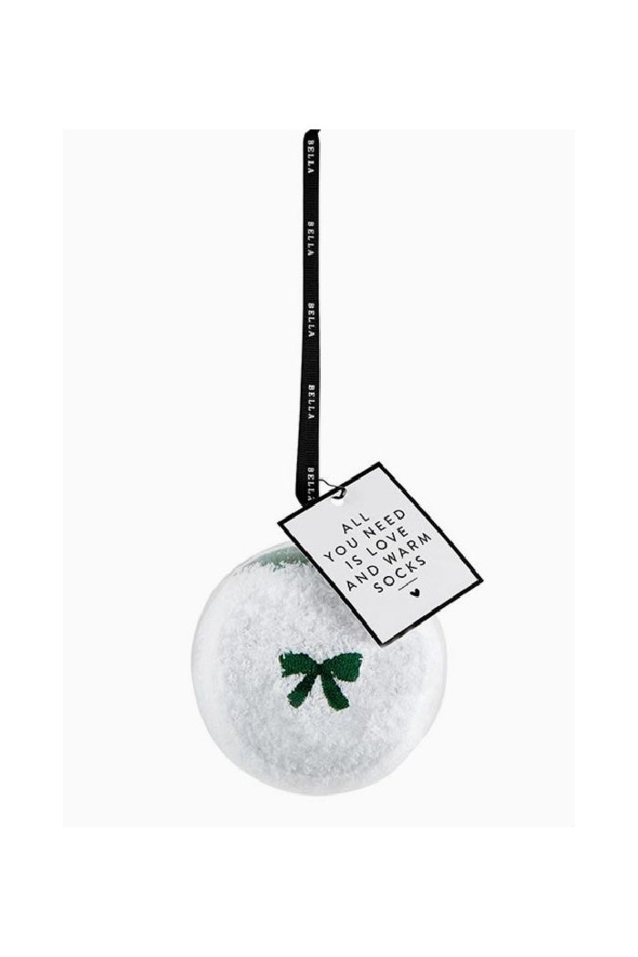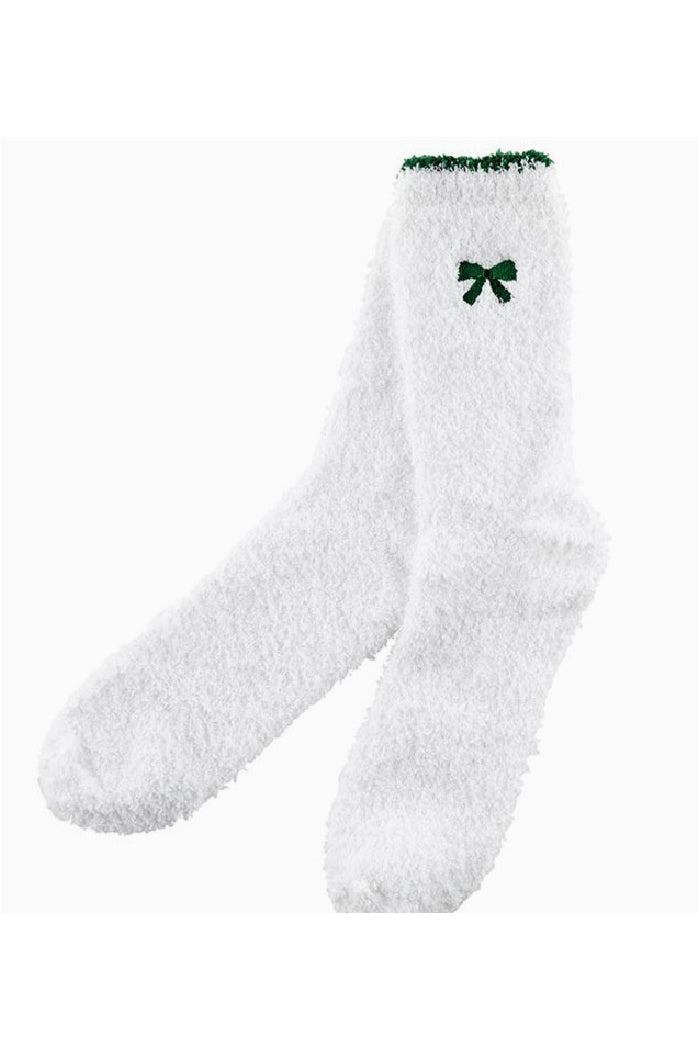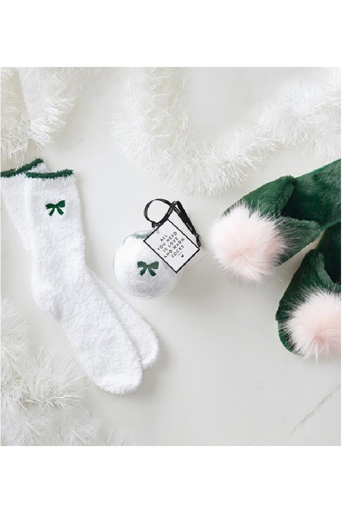 Cozy Socks in Ornament - White with Green Bow