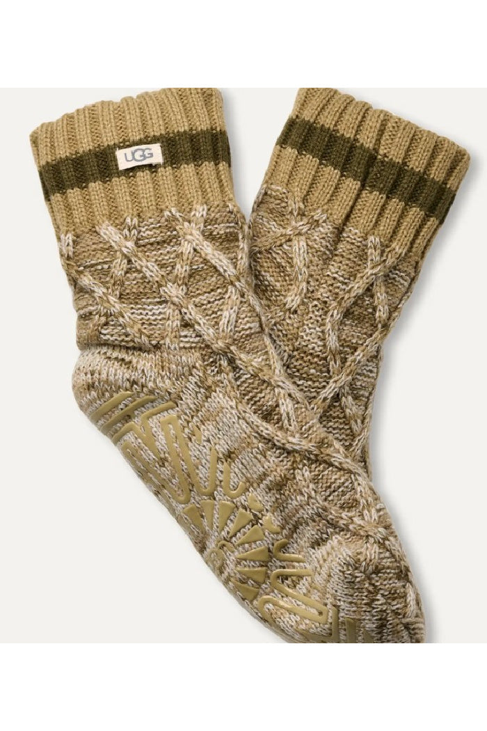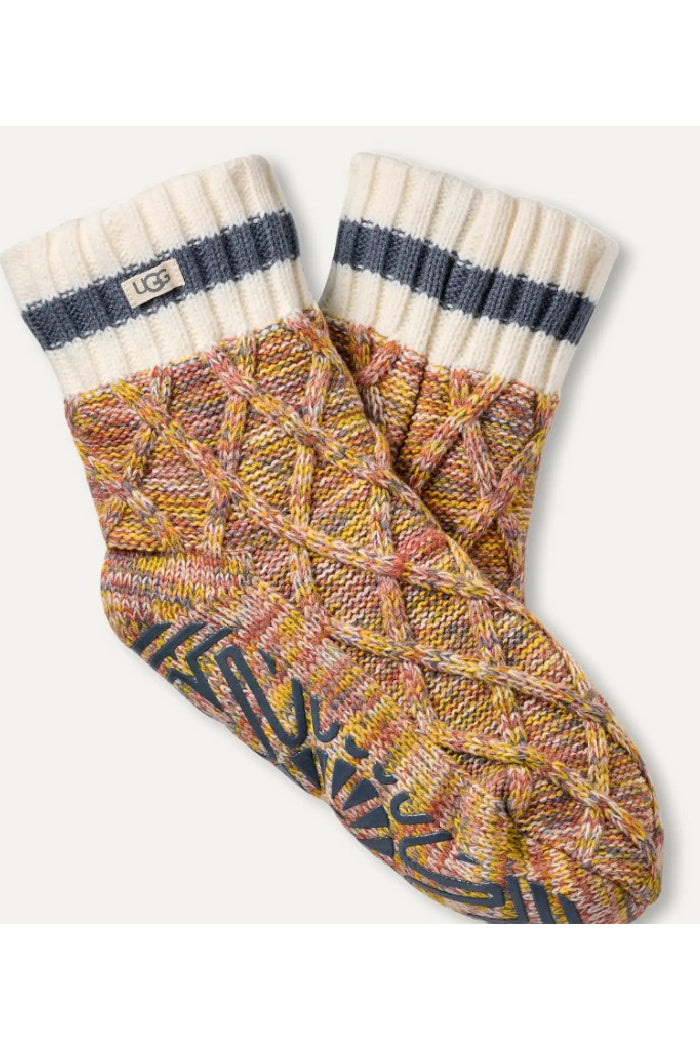Fluffy, fleece-lined, and finished with The Sun Logo Shape grip for indoor traction, our Deedee Fleece Lined Quarter II has it all. This quarter-height, cable knit sock is crafted with a special plush mélange yarn and finished with The UGG® Logo on the cuff.