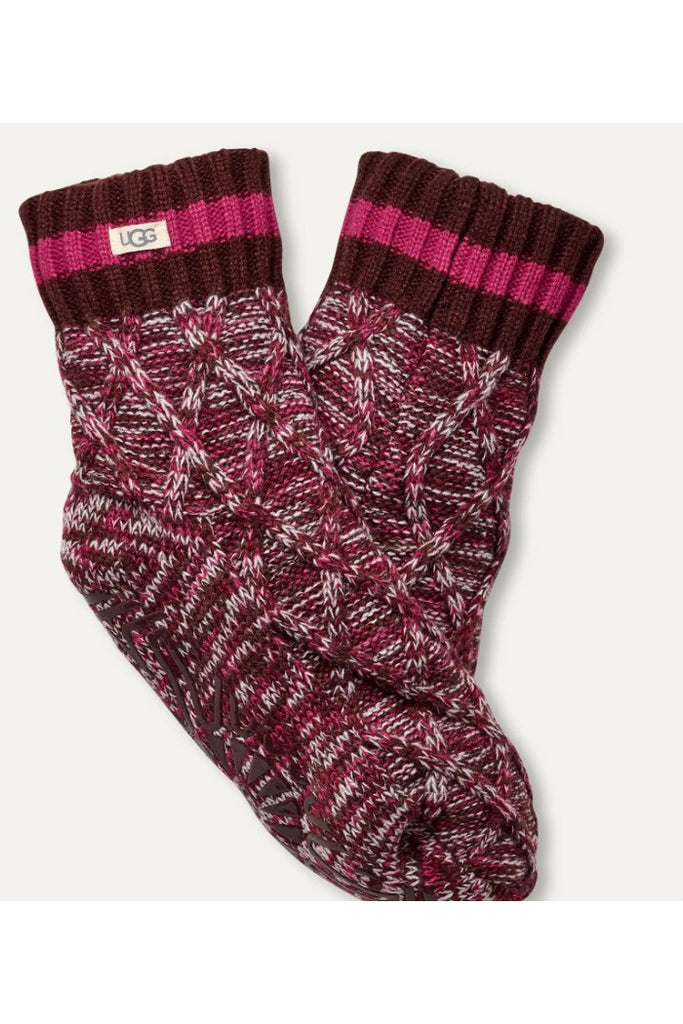 Fleece-lined quarter melange-yarn sock with UGG® printed gripper on footbed