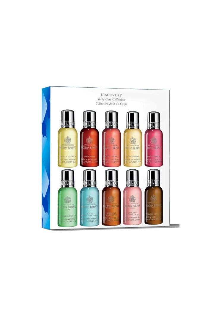 Take Molton Brown on your next adventure with our travel-size Bath & Shower Gels; from energetic citrus to sweet floral and invigorating woody, each body wash is made with the finest ingredients for a long-lasting scent trail. Plus, to package your luxuries more responsibly, our entirely plastic-free box has a tighter fit and is made with recycled materials. Set Includes: