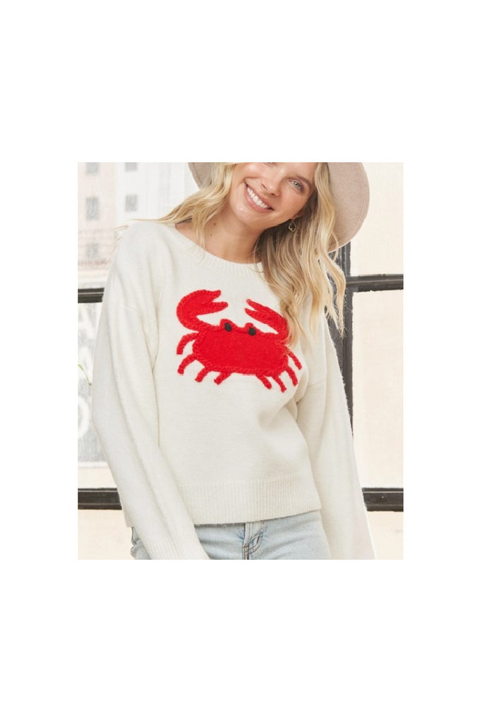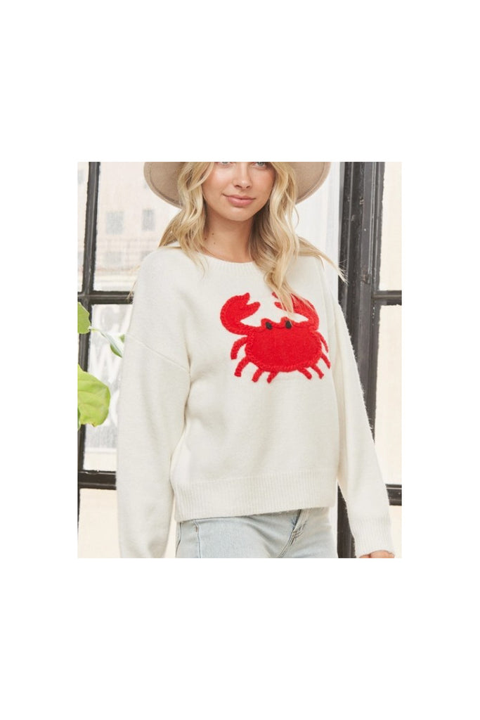 Bring a touch of coastal charm to your wardrobe with this cozy knit sweater, featuring a detailed embroidered crab graphic. Designed with soft, breathable fabric and a relaxed silhouette, it blends comfort with playful seaside style. Perfect for layering on breezy days or making a bold statement year-round.
