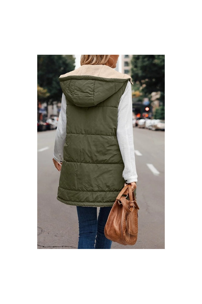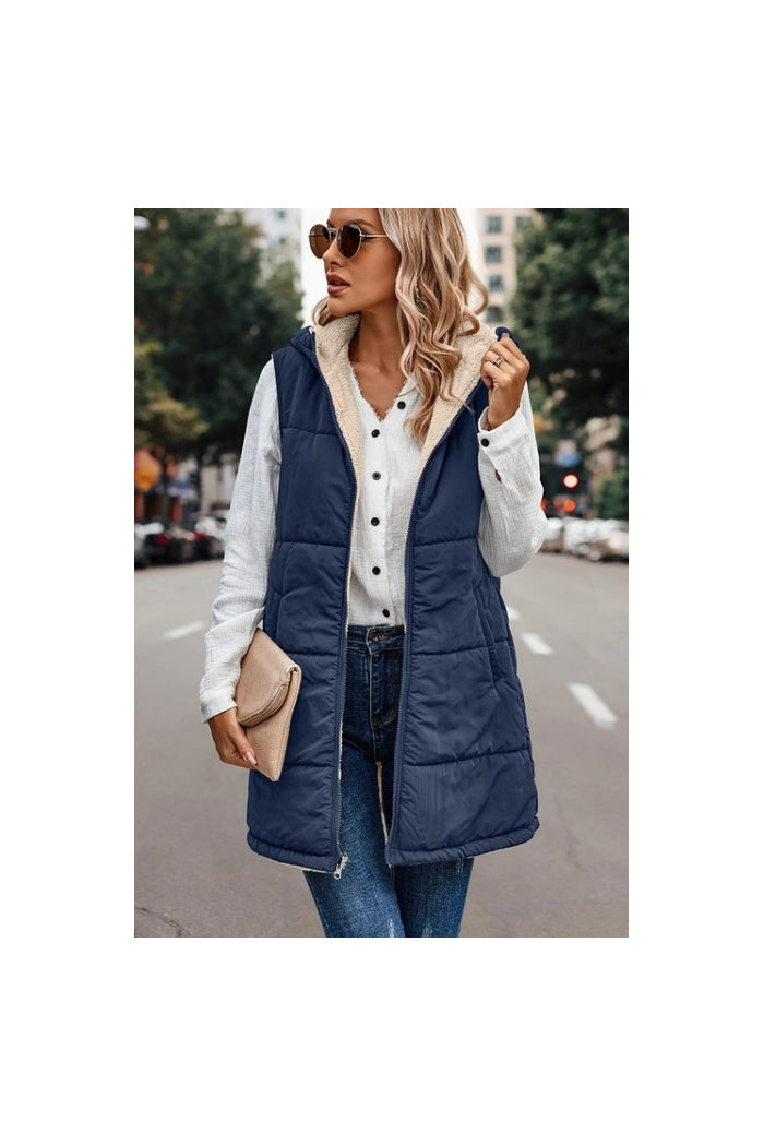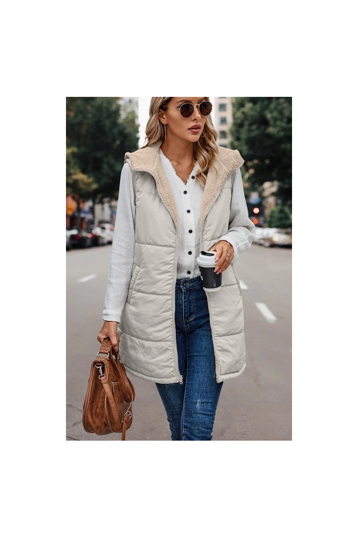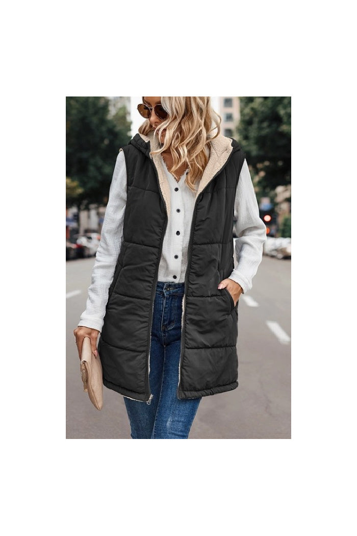 This Faux Fur Strip Zipper Front Open Pockets Coat is a sleeveless, quilted outer layer with a cozy faux-fur lined hood and practical front pockets. The streamlined zip-front silhouette lands at mid length for easy layering over sweaters and jeans. Supreme Fashion designed it for casual, cool-weather wear with a plush interior that adds warmth without bulk.