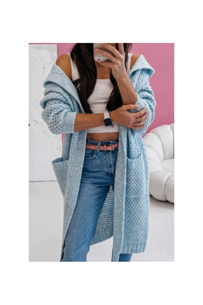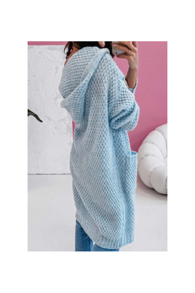 Designed with a long silhouette, roomy pockets, and a cozy hood, it combines comfort with everyday versatility. Whether you're lounging at home or running errands, this cardigan keeps you warm and effortlessly stylish.