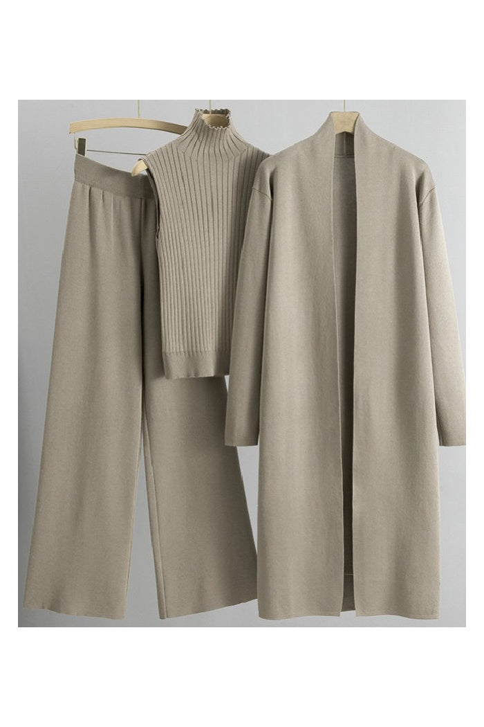 Knitted Vest, Cardigan, and Pants Set
