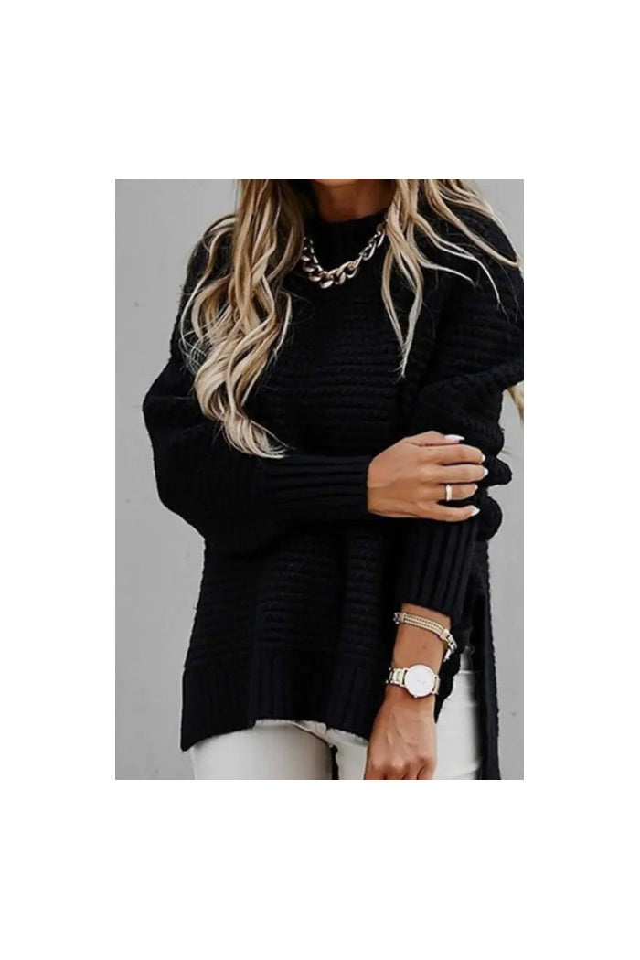 Stay cozy and chic with this solid color pullover sweater, designed with long sleeves and stylish side splits for easy movement and a flattering fit. Its clean silhouette makes it a perfect layering piece for cooler days, while the soft knit fabric keeps you comfortable all day long.