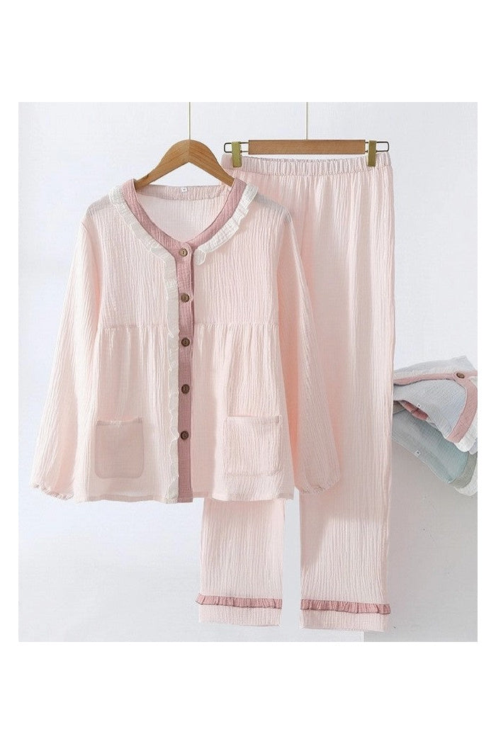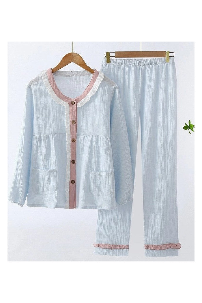 Lightweight Long Sleeve Pajama Set with Pants