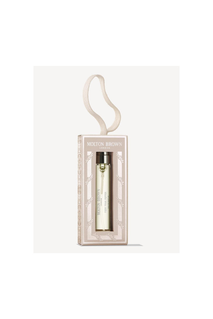 Both reminiscent of warmer days and the sultry side of party season, our Eau de Parfum Bauble is filled with smouldering aromas of rousing pink pepper, sumptuous lily of the valley, rich patchouli and flamboyant osmanthus.