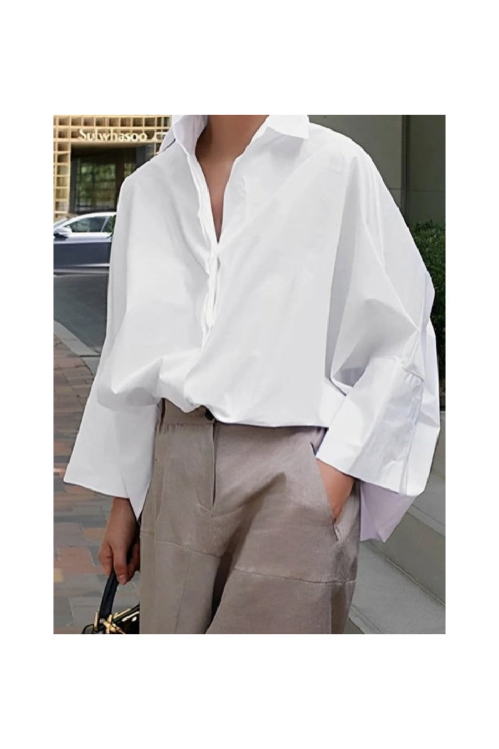 Long Sleeve Loose Solid Color Lapel Collar Blouse