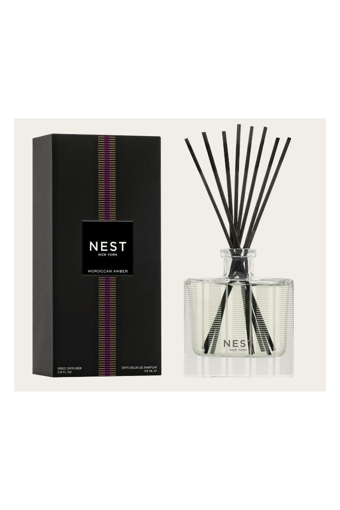Nest Moroccan Amber diffuser is Moroccan amber sweet patchouli, heliotrope and bergamot accented with a hint of eucalyptus. Nest Diffusers are carefully crafted with the highest quality fragrance oils and are designed to continuously fill your home with a lush, memorable fragrance. Nest's alcohol-free formula releases fragrance slowly and evenly into the air for over 90 days. Weight: 5.9 oz. Dimensions: 8" tall w/ reeds