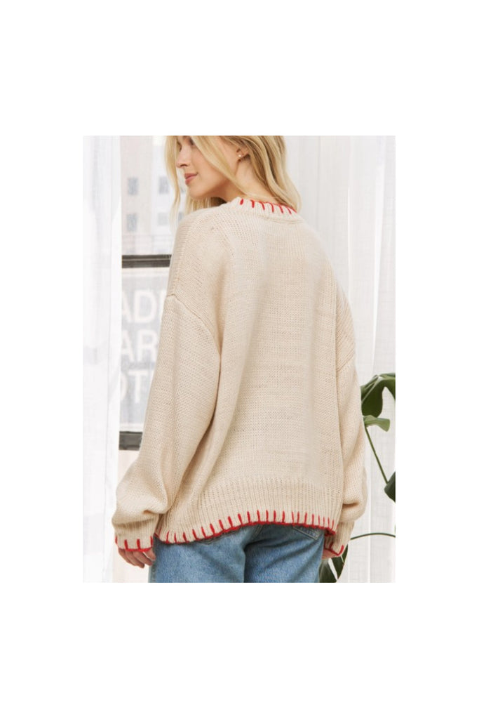 Finished with ribbed bands at the hem, neckline, and cuffs for a clean silhouette, and detailed contrast edge stitching for a unique twist, this sweater is as stylish as it is comfortable. Whether you're heading to brunch or lounging seaside, this pullover brings coastal vibes wherever you go.