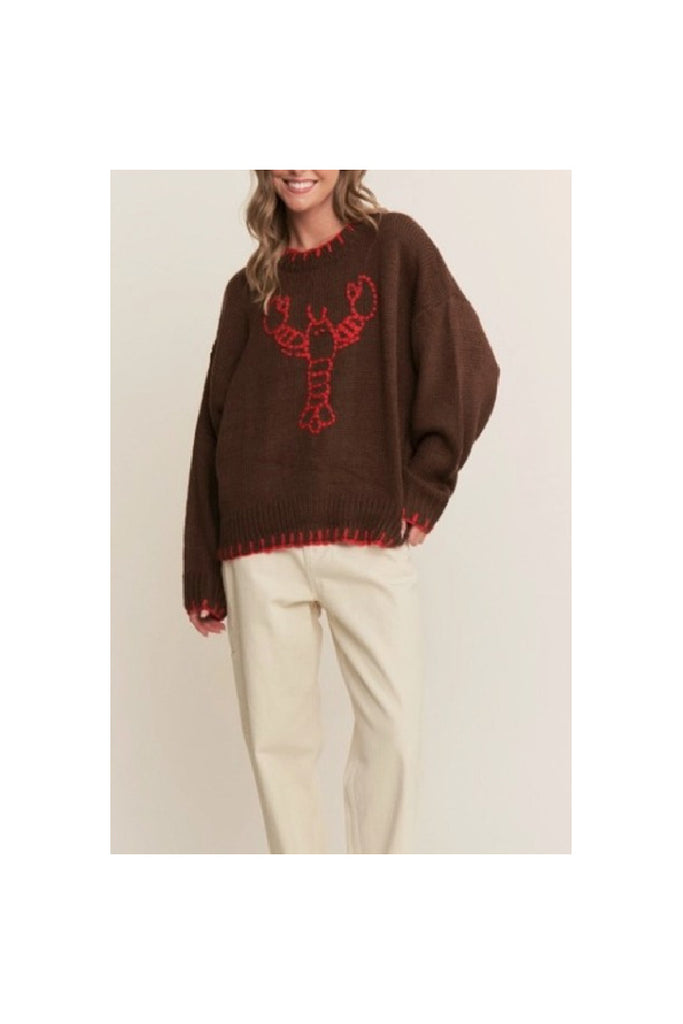 Adorable lobster motif knitted on the front