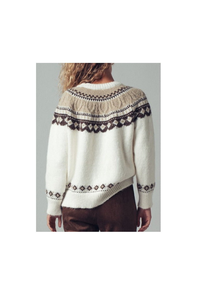 • Textured cable knit around yoke with Nordic-inspired geometric pattern
