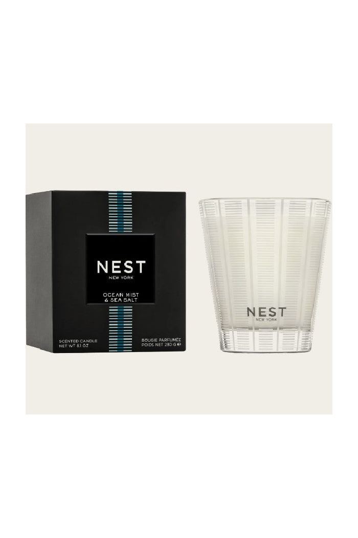 Ocean Mist & Sea Salt Nest Scented Candle: The refreshing essence of a gentle ocean mist is combined with hints of sea salt, white tea and coconut NEST Fragrances candles are made with a premium, soft, highly refined, cosmetic-grade wax that was developed over many years to optimize burn and fragrance diffusion.