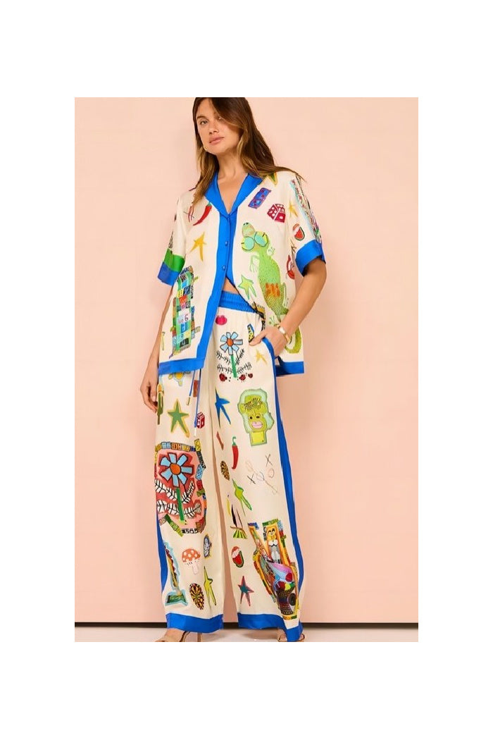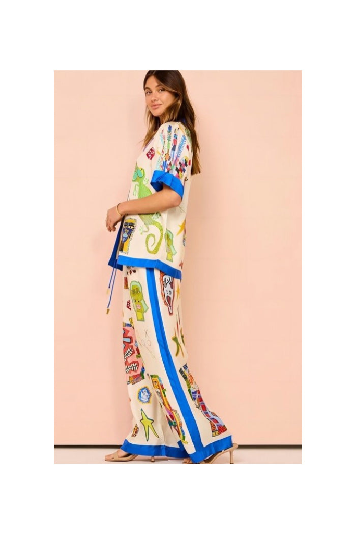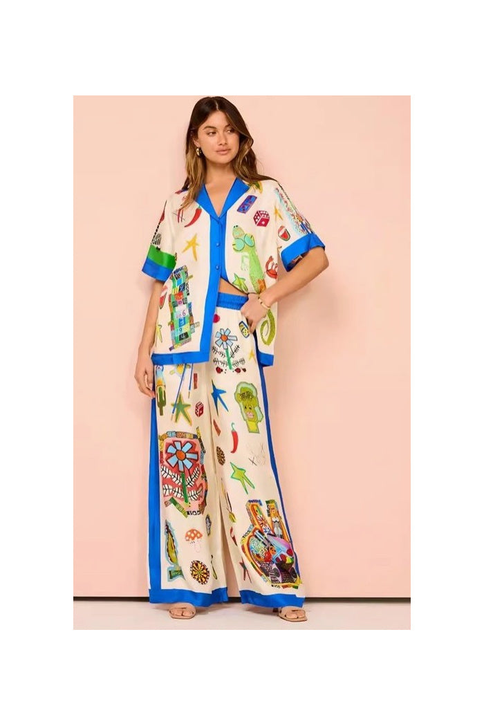 Paired with matching printed pants, this all-match ensemble blends comfort with modern style. Whether you’re heading out for the day, meeting friends, or enjoying a casual outing, this set transitions seamlessly from relaxed to polished.