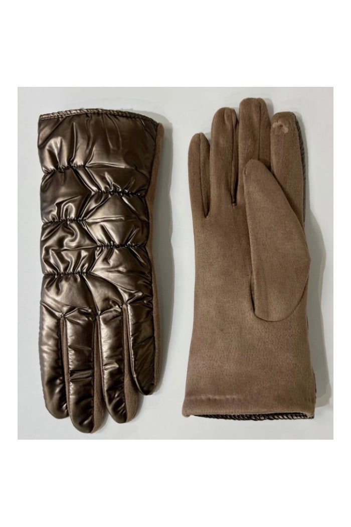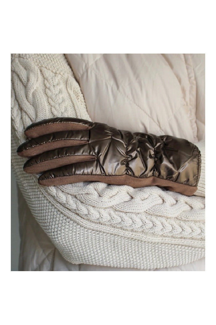 Quilted puffer gloves engineered for smartphone use, combining a glossy insulated exterior with a soft fleece palm. The Puffer Texting Gloves offer lightweight warmth and touchscreen-sensitive fingertips for everyday cold-weather wear. These gloves are styled by La-a SOLE and pair practical insulation with a sleek, modern silhouette.