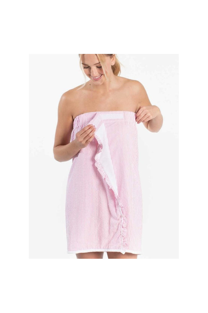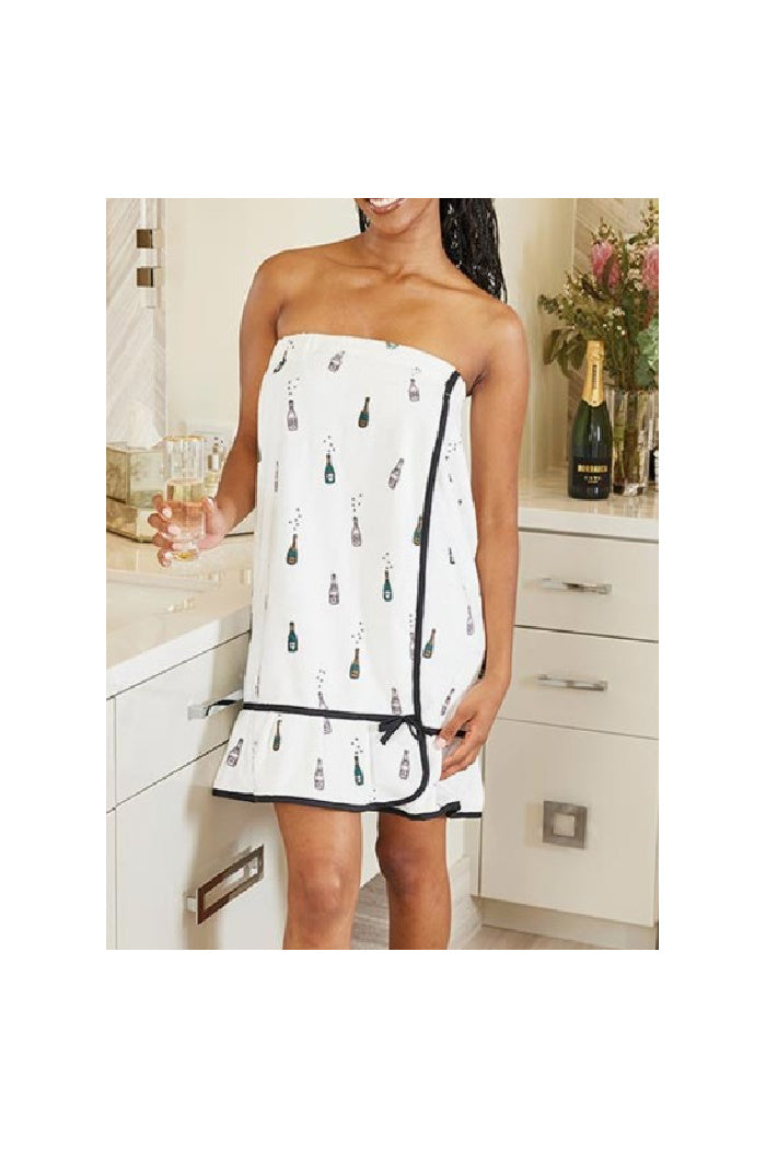 Blissfully cozy, Bella's plush spa wrap is the ultimate après-shower delight. With ultra-soft fabric and a sweet ruffle accent, you won't want to get dressed. Never again will your towel slip off while blow drying your hair or applying makeup. Our best-selling spa wraps are a must for the graduate, bridesmaid, new mom, or girlfriend. These spa wraps are made with a soft elastic band across the back and finished with a Velcro closure in front.