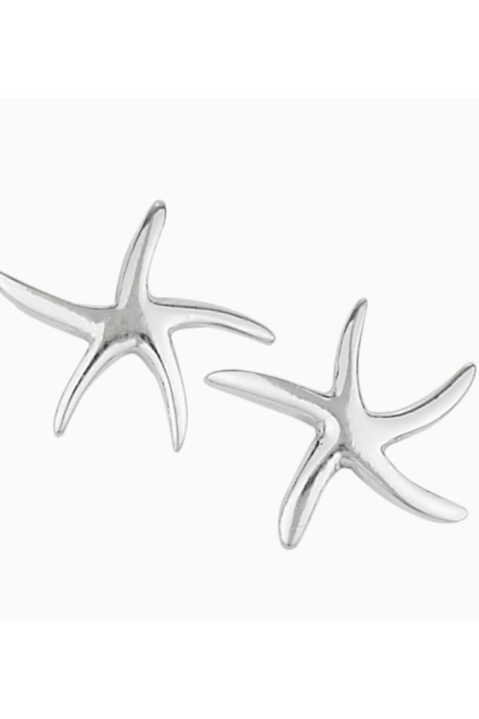 Delicate starfish-shaped stud earrings cast in polished sterling silver bring a coastal touch to everyday wear. The Swimming Starfish Sterling Silver Earring is lightweight and sculpted with gentle arms for a natural, handcrafted look. This design is offered by Tiger Mountain Jewelry and pairs easily with both casual and resort wardrobes.