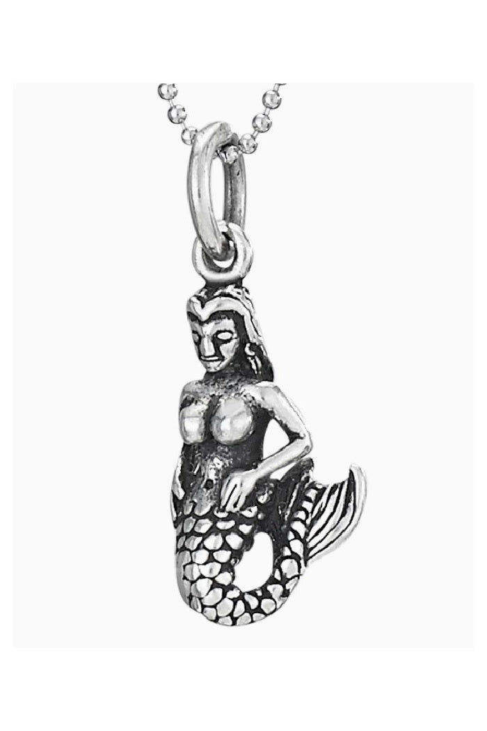 Oxidized sterling silver mermaid pendant on sterling silver 18" ball chain. Approximate drop 3/4"