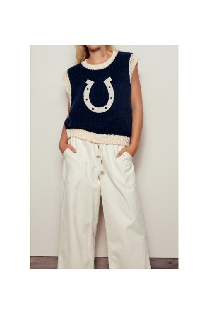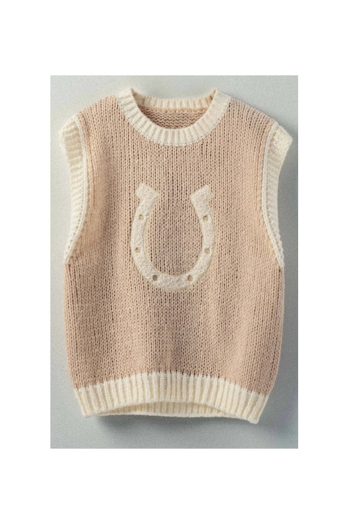 Western Horseshoe Crochet Knit Ribbed Trim Sweater Vest