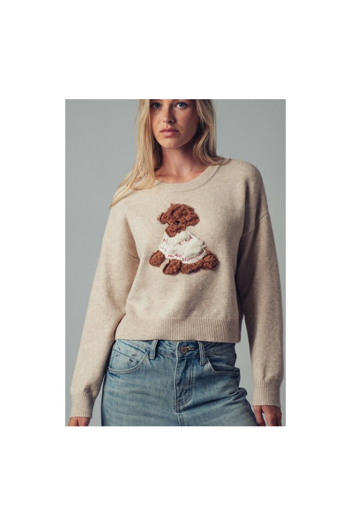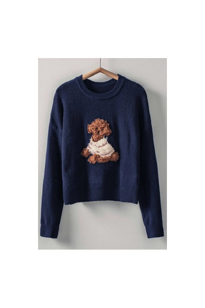 Playful charm meets cozy comfort in this knit sweater featuring an adorable puppy appliqué. Crafted from soft, breathable yarn with a relaxed fit, it’s perfect for adding a touch of fun to your everyday wardrobe. The textured appliqué design brings the pup to life, making this piece as delightful to wear as it is to style.